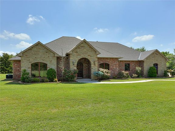 Stunning 3 bedroom, 2.5 bath house that is secluded and close to town! This standout home is custom built with beautiful woodwork and is energy efficient. It offers open living with fireplace, gorgeous kitchen, featuring a huge island and dinning room great for entertaining. Large windows across back to expose back yard with mature trees, and patio with built in grill and granite counter top. Spacious master suite with fireplace, master bath has separate his & her vanities large walk-in shower. Large walk-in closet with plenty of storage, builtin dresser and access to laundry room. 3 car over sized garage with sink cabinets and storm shelter give tons of additional storage. In addition to this amazing home there is a 30x60 shop with cement floors, 2 -12x10 over head doors, wired with 200 amp service plus an additional 30x60 cement pad in front of shop.