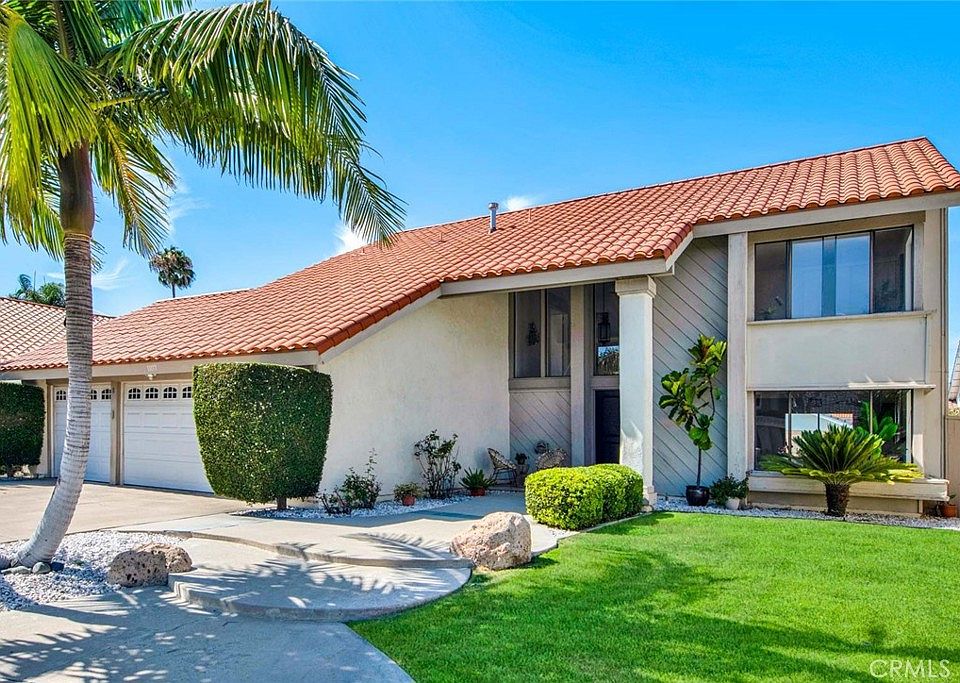 Rare Opportunity to Own this Outstanding 4 Bedroom, 2.5 Bath, 2,340 Square Foot Woodside Home with a 3 Car Garage, Nestled at the End of a Quiet Cul-de-Sac! First Time on Market, this Well-Loved Home, where Children were Raised and a Family Legacy was Lived Out Since it was First Built in 1976 by JM Peters Can now be Yours to Call Home! It has Recently been Freshly Updated to be able to Provide its New Owners with a Clean Turnkey Home, Including New Interior Paint, Scrapped Ceilings, New Light Fixtures (Inside and Out), Re-Surfaced Countertops, New Neutral Carpet, Remodeled Guest Bathroom, and a Tray Ceiling with LED Recessed Lighting in the Kitchen. It Boasts Beautiful Curb Appeal with Wide Driveway, Red Tile Roof, and Manicured Tropical Landscaping. Step Through the Double Entry Doors to a 2-Story Tiled Foyer with Enormous Transom Windows that Cast Lots of Natural Light into the Elegant Formal Living Room and Garden-View Formal Dining Room. It Features a Warm and Inviting Spacious Family Room with a Brick Fireplace and a Full Entertainers Wet Bar with Wrap-Around Seating. The Family Room is Open to the Spacious Sunlit Bright White White Kitchen with Tile Flooring, Gas Cooktop, Dishwasher, Microwave, Oven, Eat-In Breakfast Nook, and Sliding Glass Doors that Open to the Tranquil Backyard Oasis for a Seamless Transition from Indoor to Outdoor Living Space. The Private, Extra Large Backyard Showcases a Lush Lawn, Garden Planters, Concrete Patios, and Block Wall Fencing. It's the Ideal Setting for Unwinding from Your Workday, Barbecue Family Gatherings, and Major Entertaining. The Freshly Painted White Staircase Banister and Railings take you Upstairs to Catwalk-Type Landing Area and All the Bedrooms. The Primary Suite is Especially Large with a Soaring Vaulted Ceiling, 2 Mirrored Closets, Dual Sinks, and a Walk-In Tiled Shower. The Remodeled Hallway Bath Also has Dual Sinks and a Tub/Shower Combo with Designer Tile with Glass Mosaic Tile Inlay Surround. There is a Half Bath Downstairs with Wainscoting and Direct Access to the 3 Car Garage with Washer and Dryer Hook-Ups. This Fabulous Home is Walking Distance to Mile Square Park, Lake, and Golf. Short Drive to Beach, Shopping, Restaurants, and Excellent Schools.
