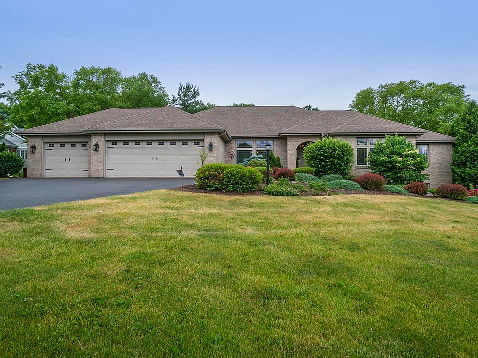 WELCOME TO THIS EXCEPTIONAL RANCH SITUATED ON A SPRAWLING 1.41-ACRE LOT WITH METICULOUSLY DESIGNED LANDSCAPING AND MATURE TREES, OFFERING A SERENE AND PICTURESQUE SETTING. The house features a well-appointed kitchen with an island and table space, providing ample room for culinary endeavors and casual dining. Adjacent to the kitchen is the living room, which boasts a stunning double-sided gas fireplace that adds warmth and character to both the kitchen and living room areas. The living room also boasts a tray ceiling and large windows, allowing an abundance of natural light to fill the space. One of the highlights of this remarkable property is the 4-season room, providing a versatile space that can be enjoyed all year round. It's an ideal spot to relax and enjoy the surrounding views. The master bedroom is a true sanctuary, complete with a fireplace for added coziness and charm. The en-suite bathroom offers a luxurious experience with a walk-in shower and a separate tub, providing the perfect setting for relaxation and pampering. The fully finished walk-out lower level offers additional living space and entertainment options. It includes a family room w/fireplace, a spacious rec room, a bar w/pool table area, a theater room for enjoying cinematic experiences at home, a bedroom, a bathroom, and a Office/4th bedroom. This lower level is perfect for hosting gatherings and provides a variety of options for recreation and leisure. Outside, you'll find a private stone patio area, perfect for outdoor entertaining or simply unwinding in nature's embrace. Additionally, there is a pond that adds a touch of tranquility and beauty to the outdoor space. This property also boasts a convenient 3-car attached garage, providing ample space for parking and storage.