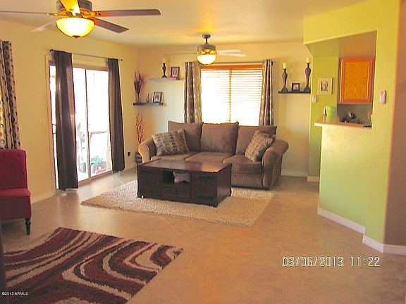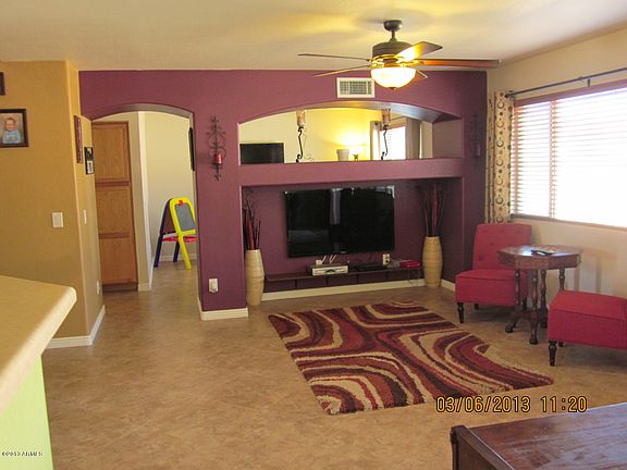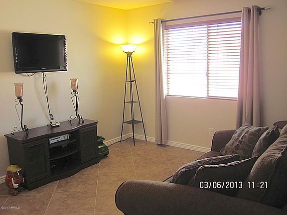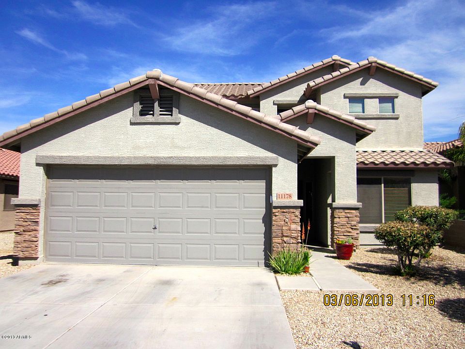 Beautiful home ready for you to move right in! Stacked stone exterior details add to the charm... which includes designer paint, 20'' off-set porcelain tile (475 sq. ft. extra tile to finish upstairs bathroom & hall upstairs), custom wood blinds, drapes and ceiling fans throughout. Stainless steel appliances and large breakfast area open to great room....perfect for entertaining! Spacious den/playroom, half bath & huge laundry room downstairs. Large master bedroom with higher vanities, huge walk-in closet and 2 additional bedrooms and full bath upstairs. Washer, Dryer & Refrigerator included! Just bring a tooth brush! New garage Community park, bike path and great schools nearby. Close to PIR, I-10, convenient to shopping & downtown Phoenix.