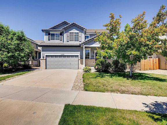 Freshly painted modern exterior with a lovely front porch invites you into this gorgeous home. Dark wood floors & nicely chosen interior paint colors make the formal living room pop. Enjoy the 2-sided fireplace and surround sound speakers in living room. The modern kitchen has all new appliances with a gas burning stove, quartz counters & back splash. In addition to the plentiful amount of cabinet space there is also a pantry. Bathrooms have been updated including the main floor guest bath. Upstairs, you'll find a spacious loft with lots of built-in's. Perfect for a home office, play room or convert to a 4th bedroom. The roomy master features a private bathroom and walk-in California Closet that stays. One of the other bedrooms also has a walk-in California Closet. Basement is unfinished. Back yard is very private with gorgeous mountain views. Enjoy those beautiful sunsets on your stamped concrete patio! Conveniently located near schools, shopping and 470 making commute times easy!