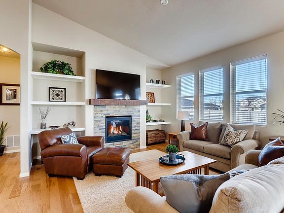This beautiful open-concept, three-bedroom, two-bathroom home located in The Shores neighborhood should not be missed. The gorgeous, wide-plank, hardwood floors lead into a home that has an abundance of upgrades, including 8-foot doors, oil- rubbed bronze fixtures, an upgraded home elevation and brand-new carpet. The kitchen is complete with stainless-steel appliances, custom backsplash, granite countertops, Cityscape cabinets with crown molding, walk-in pantry and an enormous island. The family room boasts a cozy gas-log fireplace, built-in shelving and opens up to the kitchen and eat-in area. This home also offers a covered patio overlooking a fully-landscaped rear yard which is perfect for relaxing or entertaining!
