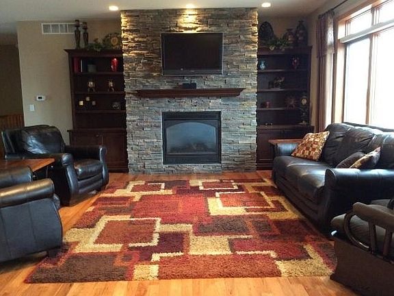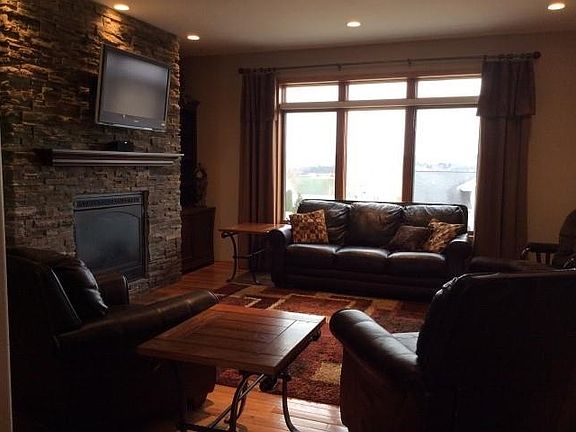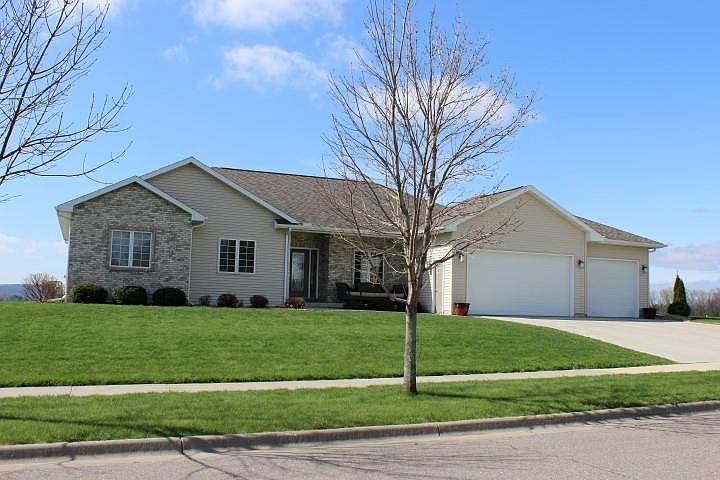 Spectacular view of the Baraboo Bluffs. Open concept w/ views from living room, kitchen, & Master bedroom suite. Formal dining, plus eat-in kitchen w/ island, quartz counter tops, & stainless steel appliances. Finished walkout lower level boasts 4th & 5th bedrooms, a huge family room, & den. Great yard w/ deck, patio, & extensive landscaping. Integrated whole house audio system (ask for details!), 9' ceilings, hardwood & ceramic floors, zoned heat, 3 car garage. New water heater & A/C. UHP Home Warranty!