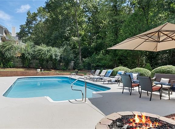 Spend your afternoons lounging by the pool with the sounds of the babbling stream in the distance! This spacious home in Woodwinds offers four bedrooms, five full baths, and plenty of room for everyone! The welcoming covered front porch leads into the living room with tiled fireplace and doors to the rear deck. The stunning kitchen was updated in 2019 and offers new cabinetry, granite countertops, black stainless steel appliances, with a breakfast room overlooking the glistening pool below. The main level also offers a master suite, dining room/home office, laundry, and 2nd full bath. Upstairs, you'll find a guest suite with private bath, and two additional bedrooms sharing a hall bath. The partial basement has a finished den, full bathroom for pool guests, and plenty of storage. The spacious double garage has a finished room (unheated) above for storage or easy expansion. Updated roof, HVAC, flooring, pool pump and liner, all new kitchen, updated baths...you can move right in!