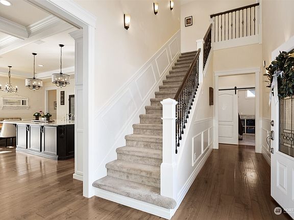 Comfortable elegance is a great characterization for this impressive residence! Stunning custom home located in downtown Puyallup. Chef's dream kitchen is the heart of the home- lrg quartz island, walk-in pantry, custom pull outs, undercabinet lighting, pot filler, too much to list. Spacious primary on the main level w/en-suite, large 2 heads walk-in shower, heated tile floors, double vanities, walk-in organized closet & access to main flr laundry. Upstairs discover versatility w/2 bedrms both with walk-in closets + Jack & Jill bathrm, XL bonus room w/ mini fridge, incl. built-in Infinity surround sound. Fully fenced & private backyard. Owner/builder has thought of every custom detail in this home, don't miss the extra comments in photos!