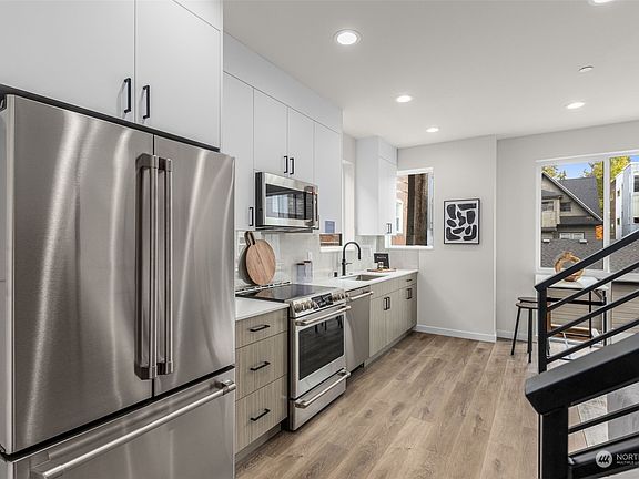 $5K lender credit! Boasting a 98 Walk Score, enjoy an array of bistros, boutiques & upbeat nightlife from your new home in this perfect location on Capitol Hill! This bright, SW corner residence by Greencity Homes faces the street and offers 2-bedroom + flex space. It is the ONLY one of this floorplan and price! Features include a full-floor primary suite, premium SS appliances, quartz counters, upgraded Cafe appliances, Bosch H/C + all the convenience of a new construction home! On the top level, host your friends in the bonus space w/ wet bar & roof deck with views, or set it up as an incredible home office or workout space. This unmatched location allows quick access to I-5, Light Rail, First Hill, Seattle U & more! Photos of model.