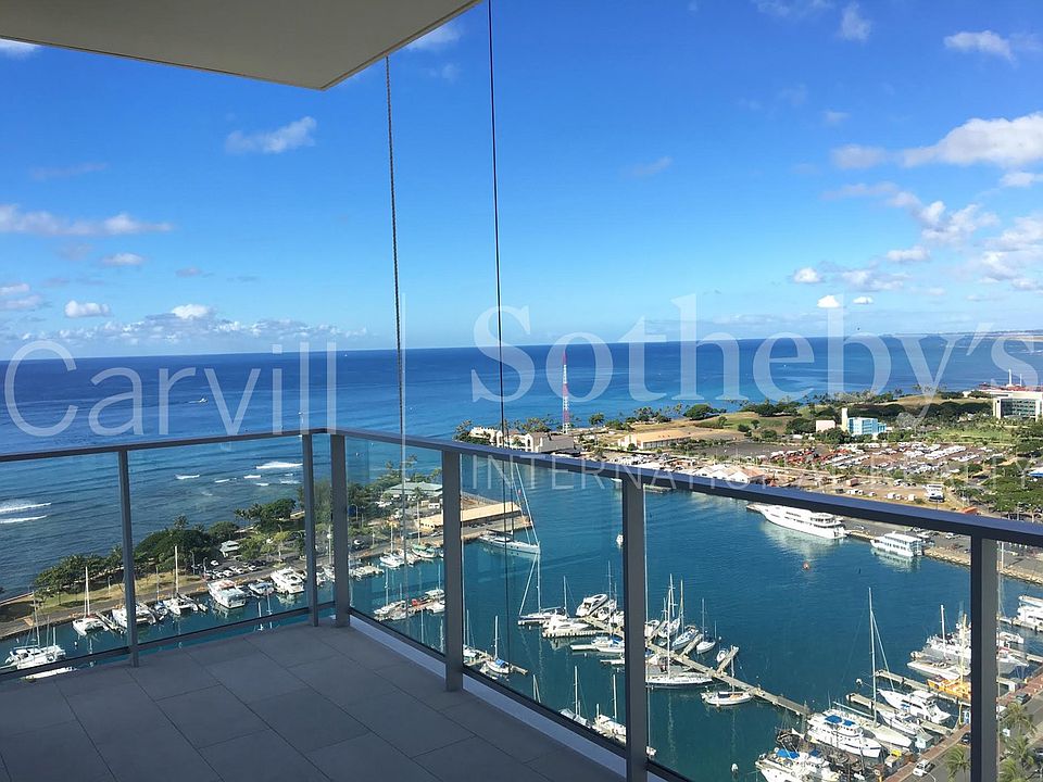 Welcome to Waiea, a world of endless elegance simply perfected. Enjoy the beautiful indoor-outdoor lifestyle of world-class amenities as you view the seamless ocean and white sandy beaches of Ala Moana. You arrive via your private foyer and enter your own paradise featuring a vast lanai with gorgeous unobstructed ocean views, high ceiling glass windows, gourmet kitchen with Miele appliances (convection and steam ovens, microwave, coffee machine, wine refrigerator), quartz counters, hardwood oak flooring, motorized solar shades, walk-in closets, upgraded laundry, separate storage spaces, and so much more. We invite you to come experience this wonderful masterpiece to appreciate the beauty and convenience of this luxurious, never before lived-in residence in the heart of exciting Kakaako.