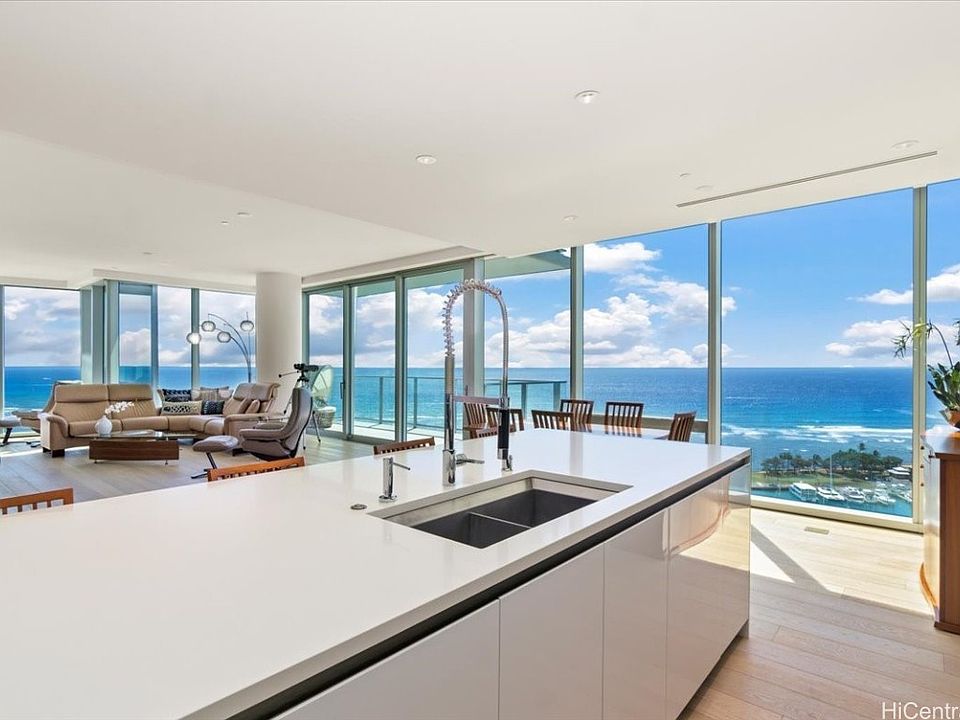 Embrace Hawaii's iconic vistas of the ocean, Waikiki, Kewalo Basin, and Diamond Head as you enter this exquisite corner oceanfront unit! Your arrival is marked by an exclusive elevator opening into your private 217-sf foyer, setting the stage for a realm of contemporary coastal elegance. This splendid 3-bedroom, 3.5-bathroom abode is meticulously appointed with sleek wood flooring throughout, top-tier Miele appliances, and includes 2 parking stalls (3-54 & 3-55). Nestled within a tower housing approximately 164 units and featuring chic ground-floor dining options, this residence is the epitome of luxury living. The resort-style amenities redefine indulgence with top-notch concierge services, poolside cabanas, an infinity-edged ocean-view pool and hot tub, outdoor BBQ pavilions, a cutting-edge fitness center, lavish spas, a serene library, a private movie theater, a sunset bar, a chef's kitchen, and dedicated full-time resident specialists, all designed to cater to your every whim.