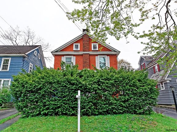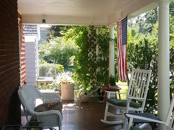 Character throughout in 4BR/2.5BA Dutch Colonial. Private Front sitting porch with french door leading to living room with fireplace. Hardwood floors on all 3 floors, formal dining room, eat-in kitchen with new counter tops and freshly painted. Spacious bedrooms. Master bedroom freshly painted with walk-in closet and crown molding. Updated and freshly painted full bath, additional den/family room on first floor. Finished attic with 1 bedroom, full bath and large room for office or 5th bedroom. Newer boiler & hot water tank. Deck with above ground swimming pool and 2 car garage. Replacement windows throughout. Taxes reflected are w/basic STAR.