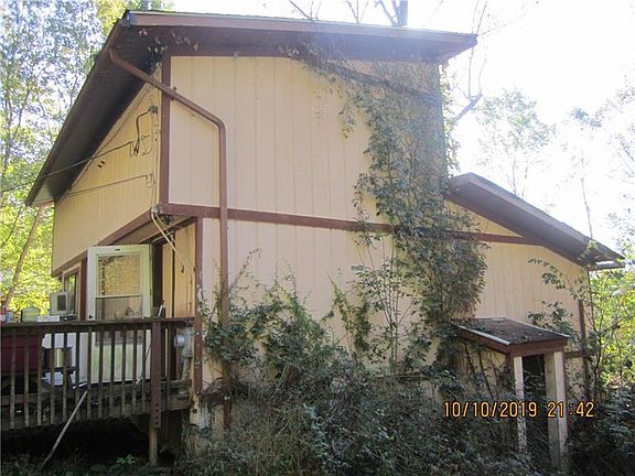 UNUSUAL FIND.. COMPLETELY PRIVATE CONTEMPORARY HOME IN WOODED SETTING ON 5+ ACRES ........ACCESS TO HOME HAS EASEMENT ON NEIGHBORS PROPERTY (175 STEPS). THIS HOME NEED MAJOR TLC AND REPAIRS!!!! HOME BOASTS 1 1/2 STORY, 3 BEDROOMS, 2 BATHS AND ONE 1/2 BATH IN BASEMENT, T111 SIDING, HUGH LR W/STONE WALL READY FOR WOODBURNER, ELECTRIC RADIANT HEAT AND SPACE HEATERS. UPPER LEVEL HAS MASTER BR WITH BATH THAT RUNS FULL LENGTH OF HOME. 2 BR'S MAIN LEVEL AND 2 BRS LOWER LEVEL. CISTERN-MAIN SOURCE OF WATER TO THE HOUSE-- HAS COLLAPSED AND ROOF NEEDS REPAIRS. 3 BAY DETACHED GARAGE. LAUNDRY ON MAIN LEVEL. ALL SURROUNDED BY NATURE WITH ESTABLISHED TREES PROVIDING FOR ABSOLUTE PRIVACY. 2 BR IN BASEMENT LEVEL AND MASTER BR IN UPPER LEVEL W/BATHROOMS. THERRE IS ROOM TO ADD ADDITION TO UPPER LEVEL HOME NEED MAJOR RENOVATIONS AND IS NOT LIVEABLE UNTIL COMPLETED.