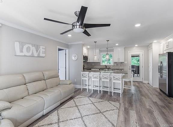 Absolutely adorable 3 bedroom, 2 bathroom ranch on over a quarter acre of land in the desirable Eden Gardens in Pineville! This beauty is in the PERFECT location- just walking distance from downtown Pineville. Completely updated throughout with white kitchen cabinets, new LVP flooring throughout the entire home, and fresh agreeable gray paint in the main living areas to name a few! Open concept main living is perfect for entertaining your guests. Head outside to your beautiful deck or enjoy grilling on the large patio! You won't want to miss this!