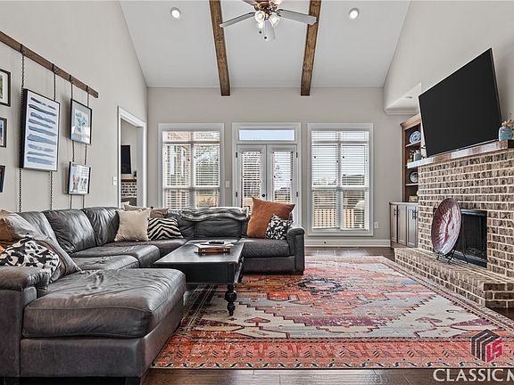 Set on a spacious 1-acre corner lot in sought-after Oconee County, this 4-bedroom, 3.5-bath brick home blends classic charm with thoughtful design across 3,157 square feet. The covered front porch sets the tone—welcoming and peaceful, it’s the perfect spot for rocking chairs and quiet mornings. Inside, the main living area features vaulted, beamed ceilings and a striking brick fireplace with built-in bookshelves on either side. Glass doors lead out to the back deck, making it easy to enjoy the outdoors. The kitchen is both functional and inviting, with custom cabinetry, recessed lighting, a tile backsplash, center island, and breakfast bar. An adjacent breakfast nook offers a cozy spot for casual meals, and it opens into a second living area with vaulted ceilings and another brick fireplace—a comfortable space for gathering or relaxing. Down the hall there is a lundry/mudroom that leads straight to the 3-car garage. The primary suite is located on the main level and includes trey ceilings and a sunny alcove that adds warmth and natural light. The ensuite bathroom features a double vanity, soaking tub, and separate glass shower. Two additional bedrooms are also on the main level, while the upstairs includes a fourth bedroom and full bathroom—ideal for guests, a teen suite, or home office—plus attic storage. There is a community pool and tennis courts to enjoy! Located just a short drive from Hwy 316, this home offers the space and comfort of country living with the convenience of nearby amenities. It’s a home that’s easy to settle into—and even easier to love. Schedule your showing at 1118 Coralbell Drive today!