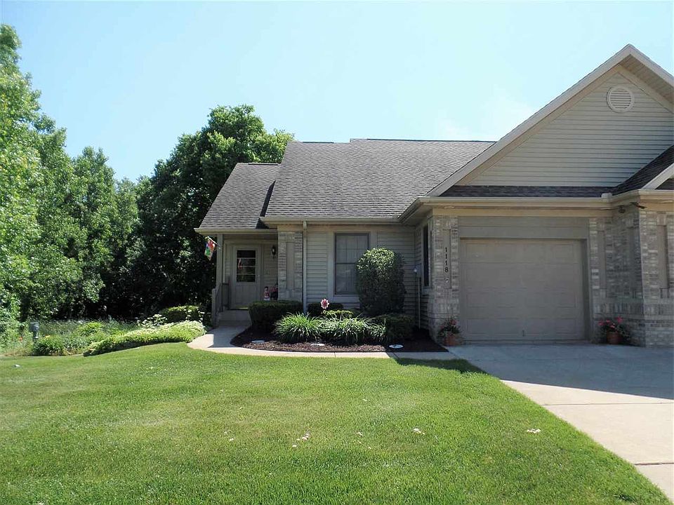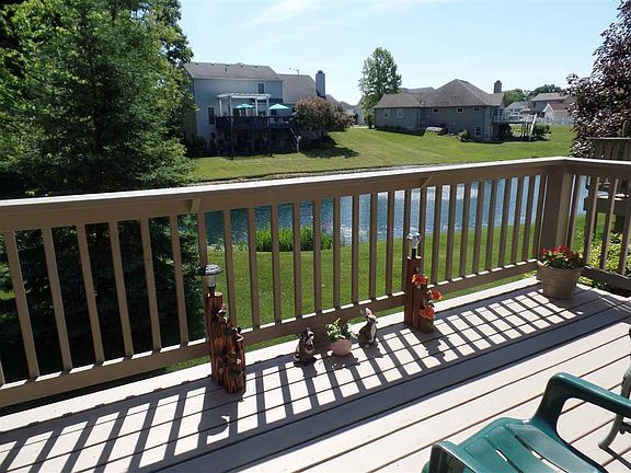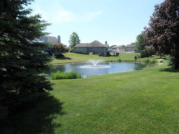 Beautifully maintained Mishawaka condo with a deck overlooking the pond with fountain. End unit offers a feeling of privacy. Nice open airy living room/ dining room/ kitchen with breakfast bar. Kitchen appliances and the washer & dryer are included.Two bedrooms on opposite sides of the home, both have an adjoining private bath. Window treatments are also included. Stairway to crawl space in garage for storage. Association fees are normally $375/quarter but right now there is an additional assessment of $150/quarter for roof replacements when it's needed. So the total is $528/quarter for association fees. Lawn care including shrubs, snow removal, roofs and sprinkler systems included. Schools, Sq. ft. and measurements not warranted.