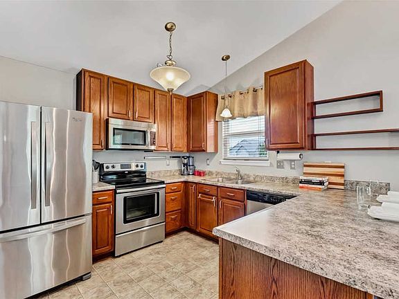 - Appliances: Dishwasher, Disposal, Microwave, Stainless Steel Appliance(s), Range/Oven-Electric