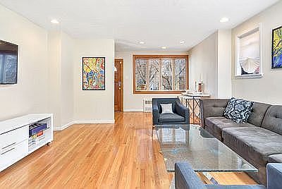 Situated on a gorgeous tree lined block, this cozy fully detached one family home is ready to move into. Walking in you have a large living room, dining room with beautiful hardwood floors, and front sitting area. Modern kitchen with stainless steel appliances and lots of cabinets, as well as power room and large front porch. Second floor features 3 bright and sunny bedrooms with ample closet space and a full bathroom. Basement was fully redone, with a large playroom, 4th bedroom or office, full bathroom & laundry area. House has central air throughout the home. Shared driveway has plenty of room in the rear of the property for 2 cars and extra large garage. Don't miss this one, call us today!