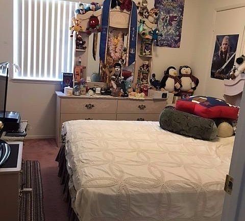 4 bedrooms 2 baths, double sink in master bedroom, all rooms have ceiling fans, original carpet, RV parking,open floor plan,ready for new family.Corner lot home built in 2001, looks new.