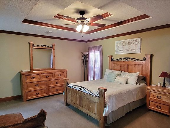 IMMACULATE HOME ON 2 ACRES! Better than new property with a 2,100+ sq ft mobile home on permanent foundation, large covered shelter for entertaining, equipment shelter and large garden area. Completely fenced & gated property is absolutely beautiful. Split bedroom floor plan with FOUR bedrooms, 2 baths, mud room, built in drop zone bench with hooks and storage, hall office, triple tray ceilings in kitchen and master, new double oven and fridge in kitchen, HUGE walk in kitchen pantry and island, SUPER COOL laundry pass thru from master bath to mud room PLUS open concept living area. New metal roof installed July 2022. Ring doorbells are also conveying on front and back doors.
