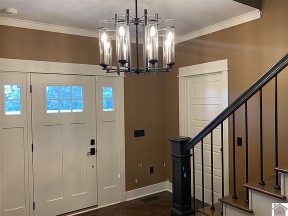 Beautiful Custom Built Home on a Private 33 Acre Estate in South Marshall! Built in 2016, this home has all of the amenities you would expect in a finely built home including approx. 5,000 sq. ft. of living area, gorgeous kitchen cabinetry, stainless steel appliances, quartz countertops, and custom finishes throughout. The large master suite features vaulted ceilings, custom tiled shower and a huge walk-in closet. The finished basement has a full custom wet bar, large bonus/hobby room, full bathroom and 5th bedroom. Located on a private country setting surrounded by pasture and trees. The large pole barn is great for storage or a workshop. This home is ideally situated with a short drive to either Murray or Benton.