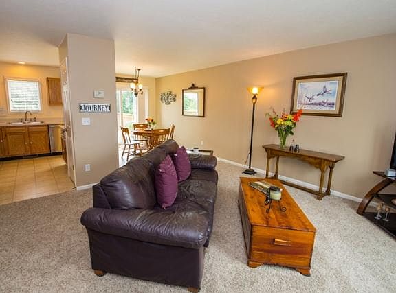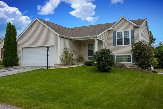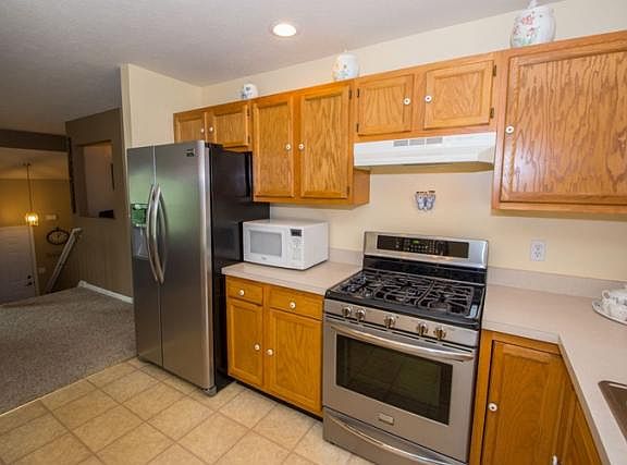 Beautiful bi-level home in The Village at Harrison Creek! As you enter via the new storm and front doors, you are welcomed into the foyer by soaring vaulted ceilings. Ascend the newly carpeted stairway into the spacious kitchen which features new stainless steel appliances. Light and bright adjacent dining area with new slider door leading directly to large outdoor deck. Relax in the evening or entertain guests in the living room which boasts new neutral carpeting and a large picture window that bathes the room in natural light. Private office nook is perfect for those work-from-home days or keeping family activities organized. New carpeting highlights the master and 2 additional bedrooms which are amply sized with plenty of closet space to accommodate family or out of town guests. 2 full baths. Lower level is the ideal space for laundry as well as an abundance of storage space. Enjoy family time or simply relax and take in the view from the multi-level deck which over looks beautiful landscaping, large yard and the neighborhood fountain pond just across the street. Lower level features a fenced area for privacy. Bonus items include a 2 year old sprinkler system, newer water softener and heater, new a/c motor and roof which was replaced just 3 years ago!