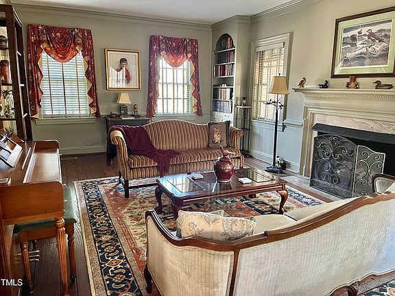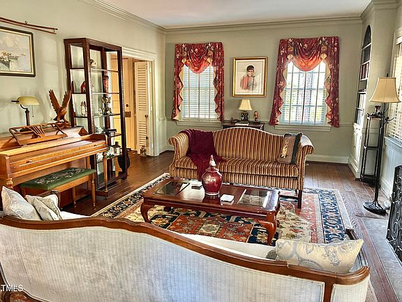 Pool season is almost here! Enjoy your own private pool in Watts Hillandale! Stunning is the word for this elegant and classic home. Looking for charm, character, elegance and super location? Look no further than this jewel, the true cornerstone of Watts Hillandale is less than two miles from Duke University Hospital and anchors the entrance to West Club Blvd. This distinguished home has been lovingly and meticulously maintained since it was built in 1939 as a Watts executive home. One of the many delightful surprises about this home is not just its impeccable condition, but it sits on over half an acre lot and has a stunning patio and private pool in the back. The landscape is well manicured all natural and creates the feel of a woodland oasis. The home inside, features a primary en suite on the first floor, with very a cool built-in closet, bureau, vanity and private bath. Off of the elegant foyer is a large living room with a gas fireplace, lovely built in bookcase and a delightful enclosed, but sunny porch/TV room. Adjacent to the bright and efficient kitchen is a lovely dining room with a beautiful bay window and an entrance that steps out onto a gorgeous and spacious outdoor stone patio. Upstairs features two large bedrooms, one is another en suite, walk in closets, built in drawers, roomy gable storage nooks and a third full bathroom. Mid century style has made a come back with its style and simplicity, and the bathrooms in this home will wow you with their cool retro colors and fixtures that are in excellent condition! Check out the art deco bathroom mirror lights! This home has a brand new roof, updated electric panel box, plumbing, downstairs HVAC installed in 2020 with warranty and the upper unit was repaired and updated in 2014 and 2017, double garage with a newly polyurea coating, plenty of driveway parking and a private fenced in backyard that is simply breathtaking. Home has fiber connected. Relax by the private pool in the summer or warm up by a cozy fire-pit in the back when the temps drop. Or just step out the back yard and stroll down to Oval Park. You really have to see it to believe how gorgeous this home is inside and out! Homes in Watts Hillandale don't come available often nor do they last long. This one won't either.
