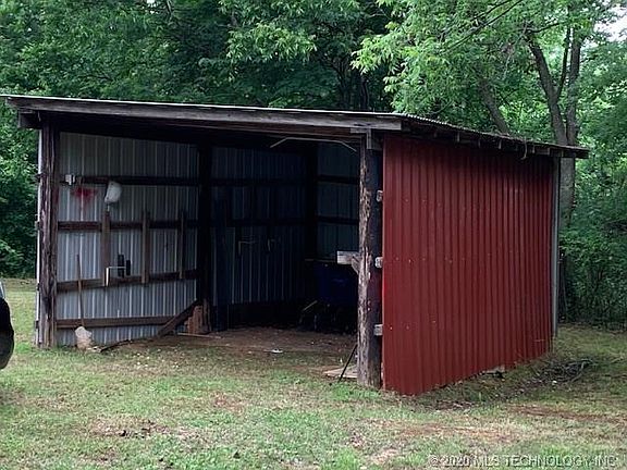 Property has two lots, Lot 13 and 14, Block 1, Fred Jones Addition. Property is located on two wooded lots. Was completely remodeled 6 years ago with a new roof added at that time. Property has been rented at $650/month. House has two bedrooms, 1 bath. Storm cellar on property. Also as a one car detached garage. Shed is located at back of property. Two lots are fenced. Stove and refrigerator do not remain with property.
