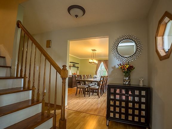 One of a kind! This is a true 5 bedroom home, all on the upper level with hardwood flooring. Master bedroom features a full bath and plenty of closet space. Huge eat-in kitchen with ceramic tile planks and tile backsplash. Granite counters with breakfast peninsula. All appliances stay, including the washer/dryer. Open living room with sliders to large deck and fenced backyard. Unique built-in book case opens for passage to the basement. Gorgeous dining room with picture window and low maintenance laminate floors. First floor laundry and private half bath. New roof in 2012. Peaceful tree-lined street with easy access to Alpine Park and shopping.