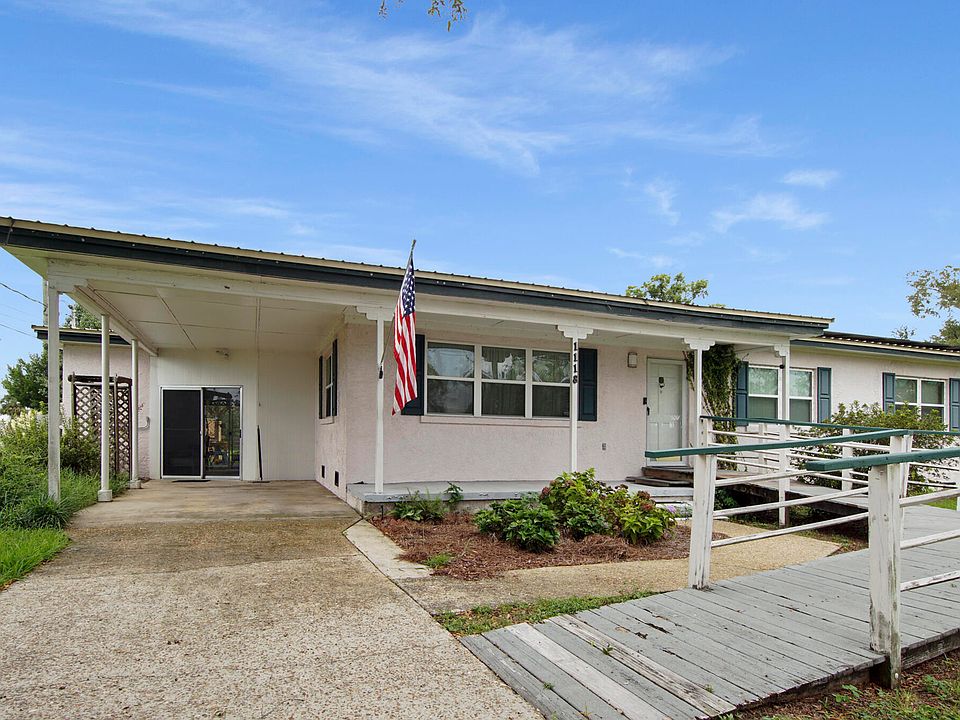 This home features and open concept living/ dining with original wood flooring throughout. The large living room boasts plenty of natural lighting, and wood paneling. The spacious kitchen sits off the dining area, leading to an enclosed storage/ patio area just off the carport and back patio. Master bedroom features a newly renovated bathroom with handicapped accessible shower. Exterior showcases a large covered front porch with ramp; back deck and covered sitting area; large shed with electrical and bathroom.