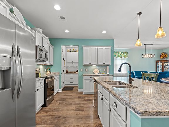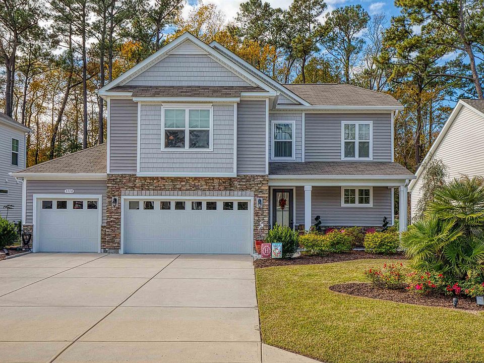 Experience coastal living at it’s finest in this beautiful home located just a short golf cart ride away from the beach in the highly sought-after gated community of Water's Edge in North Myrtle Beach. Boasting a rare and spacious 3-car garage, this 5-year-old home, featuring the Belfort floor plan by DR Horton, encompasses 4 bedrooms and 2.5 baths. The elegant foyer with wainscoting leads to an upgraded kitchen with a large island, shaker style cabinets, recessed and upgraded pendant lights, decorative glass pantry door, off-set bar/coffee station, stainless steel appliances, porcelain tile and LVP throughout the kitchen, foyer, living/dining, and baths. The oversized master suite impresses with brand new laminate flooring, large seating area, double vanity, and a large walk-in closet with additional shelving. Enjoy the open-concept living space, highlighted by a large enclosed sunroom with eze-breeze sliding panels offering breathtaking views of lush landscaping and the distant golf course. Ample natural light floods the home, creating an inviting atmosphere. In the laundry, you’ll find ample storage cabinets, utility sink, and a stackable washer/dryer. Upstairs you’ll find a cozy and spacious loft with three additional bedrooms, and full bath. The fully finished garage is a masterpiece with ten feet of wall-mounted storage cabinets, floor cabinets with plywood countertops, epoxy flooring, and glass panels in the overhead doors for natural light. Additional features include ample storage throughout the home, including under the stairs in the master closet, an alcove in the pantry, and a pull-down attic. Impeccable landscaping surrounds the home and a private grilling area outback, featuring a European fan, yaupon weeping Holly, windmill palms, and much more. Maintenance is made easy with the built-in irrigation system and outdoor landscaping covered in the monthly HOA dues. On-site amenities include a clubhouse with a fitness center and outdoor pool for ultimate relaxation. Conveniently located near shopping, entertainment, restaurants, Highway 31, and the beach, this home offers the perfect blend of luxury and accessibility. Don’t miss the opportunity, call now to schedule a private showing today!