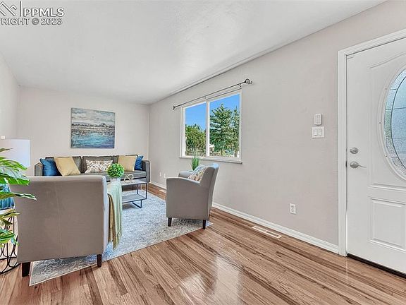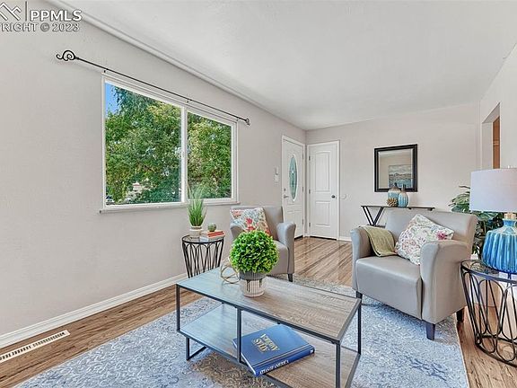 GREAT CURB APPEAL for this beautifully updated rancher located on a quiet cul-de-sac lot in the established SW neighborhood of Stratmoor Hills. Fresh painted w/ a newly xeriscaped yard, new garage door & driveway. Attractive front door w/ lead glass inset & coat closet in the entry. As you step inside this home you are greeted w/ gorgeous hardwood floors throughout much of the ML. Newer windows & interior doors throughout. The spacious living rm is the perfect place for entertaining. The updated eat-in kitchen has a lighted CF, new wood laminate floor, pantry & ample cabinetry w/ granite look countertops & new tile backsplash for storage & easy food prep. Appl incl a smooth top range oven, built-in microwave, dishwasher, & side by side refrigerator. A glass slider off the dining area leads to a paver patio w/ covered pergola for outdoor dining & relaxation. Convenient garage access off the kitchen. Enjoy 2 ML BRs & an updated hall bathroom. The BRs both have lighted CFs, closets w/ wire rack systems & mirrored wardrobe doors, & windows w/ blinds. The bathroom boasts a tile floor, vanity, mirror & tiled tub/shower. There is a linen closet in the hallway. The Bsmt has under stair storage & newer carpet. It offers a generous family rm, 2 BRs & an updated shower bathroom. The utility rm hosts the water htr, furnace, radon mitigation sys, & electrical hook up for your washer & dryer. A 2-car garage boasts a new epoxy floor, storage, & service door to the backyard. The concrete pad on the south side of the house can store your RV or small boat. Enjoy a tranquil retreat in the xeriscaped backyard that features new fencing, a self-timer irrigation sys, garden areas & paver patio w/ covered pergola. This home is conveniently located to schools, parks, shopping & entertainment such as Cinemark Tinseltown Theaters just 2 miles away. Easy commute to downtown Col Spgs & Fort Carson. Don’t miss the opportunity to make this delightful home your own!