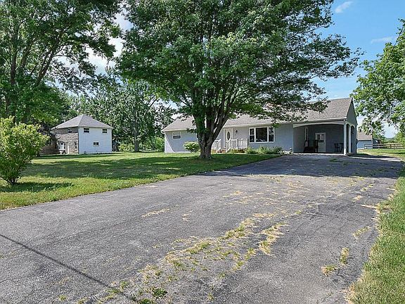 Diamond in the rough. Rare opportunity, location, location, location! Own a 5 acre horse farm; Includes 8 stall stable w/birthing and wash area, tack room/office area, turn out stall. Electric &water. Out buildings include; Pole barn 40x64, 2.560sqft., farm stable 1.728sqft., flat barn, 660 sqft., lean to 252 sqft. Pole barn big enough for inside training arena. The back 2 acres previously usable track. Dwelling is a 1,361 sqft, 3bd, 2 full baths, full basement w/fireplace. LR fireplace. Dwelling has freshly painted exterior, new water softener, roof 8yrs, septic 5 yrs, furnace rebuilt 2yrs., windows replaced 10 yrs, new poured concrete carport. Hardwood floors under carpeting. Property backs to park land. Visit FC Auditors web site for aerial view of track. Two tax parcels