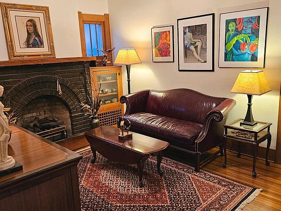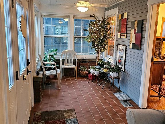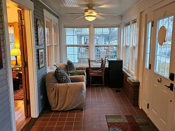 Must see this gorgeous home with tons of charm. After the pear trees out front, you'll walk in to a spacious sun porch and pass through to a living room and dining room with original hardwood floors and woodwork. Past the kitchen is a large family room addition with a bank of windows and french doors for lots of natural light. There are 2 bedrooms and a bath on the main floor and 2 bedrooms, a bath and a large bonus area through the bedroom upstairs. The home just got a new roof, siding and gutters. It also has newer furnace and A/C. In back there is a nice size patio and a 2 car garage with a work room and an upper floor for storage. Sq Ft approx.