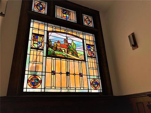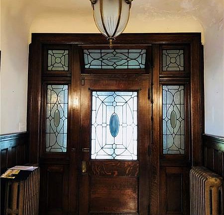 Beautiful woodwork and stained glass windows in many rooms. Pocket doors, refinished hardwoods in the foyer entry level main rooms with different mosaic patterns, dining room has leaded glass pantry style doors. Detached garage is huge with Pittsburgh toilet but water is shut off. Property was re-wired several years ago. The kitchen and baths need to be updated and refreshed although most of the windows have been replaced. Transom's galore, butlers' staircase too.Stained glass windows in most of the baths too. Large full basement. It has been maintained to the best of the sellers ability. Absolute diamond in the rough.