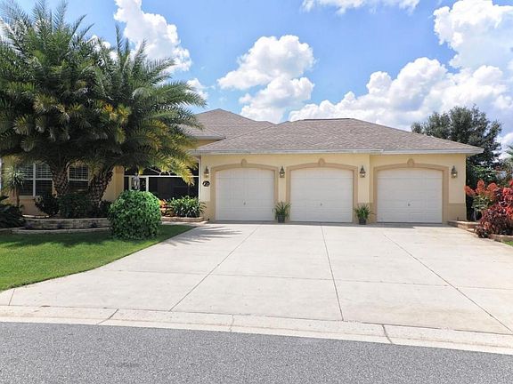 Looking for the perfect Villages location and home? - Do you want to live close to Lake Sumter Landing, enjoy water, wildlife and town views, have an oversized lot ideal for building that custom pool and gracious outdoor entertaining area, yet be located on a quiet cu-de-sac? If so, this convenient, scenic location is the right choice for you! It features a custom, expanded Williamsburg model with well-proportioned rooms, volume and tray ceilings, diagonal tile in main living areas, crown moldings, plantation shutters and neutral colors. The kitchen is customized with extra cabinets, granite countertops and a gas stove. Another plus is the built-in wiring for a sound system throughout the home.