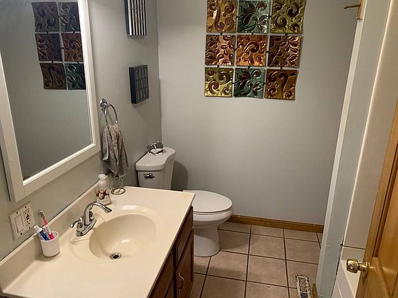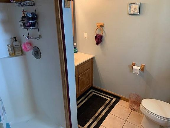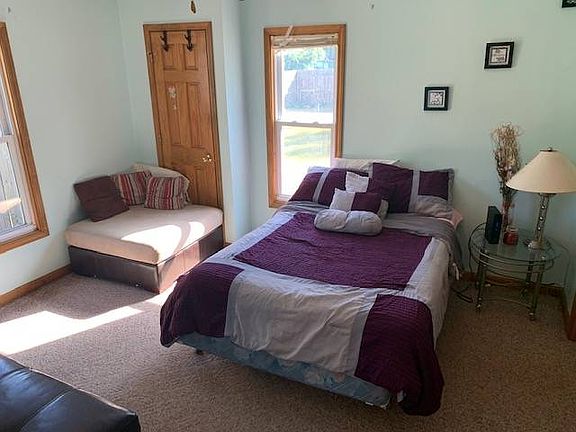Entrance: Covered porch has a decorative iron fence and entrance to the home. Living Room: Very large living room has cherry look laminate flooring, painted walls. Kitchen: Oak cabinets, ceramic tile floor, and ceramic walls. All appliances included however dishwasher hasn't been used ever. Bedroom: Berber carpet, painted walls, closet. Bedroom: Berber carpet, painted walls, closet. Bath: Ceramic tile floor, large vanity, tub/shower combo and storage. Master Bedroom: Huge room with burgandy accent wall and other walls are grey. Closet, cream carpet, private master bath has shower, vanity, commode and ceramic floor. Exterior: Vinyl siding, shingled roof. Off street parking on oak street. Yard: Very large yard has privacy fence, nice storage shed and room for all your hobbies or childs play area.