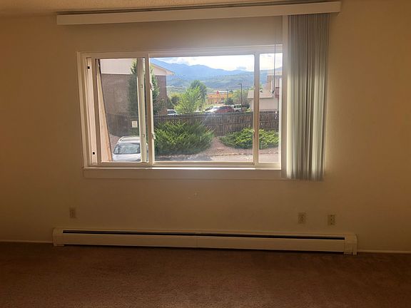 2Bd 1Ba bright and open, second floor apartment with beautiful Pikes Peak views. Water, wastewater,sewer,trash and gas are included in rent. Electric bill for the unit is responsibility of tenant. Well maintained building with newly paved off street parking lot and nice landscaping. A/C for the hot summer days, individual storage units and laundry available inside the building. Conveniently located near shopping ,banks, restaurants and hiking trails. One mile west of I-25 and minutes from CTU and UCCS. NO pets and NO smoking Income requirement is two times monthly rent , verification of income is required, positive reference from current and/or past landlord(s) Good credit and background check.
