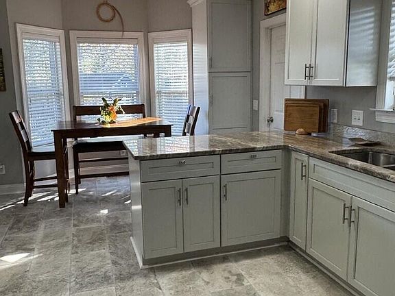 You will find the kitchen totally remodeled with granite counters, tile flooring, stainless steel appliances, and Kraft Maid kitchen soft close cabin and Kraft Maid kitchen soft close cabinets and two pantries. Gas was installed in 2018 along with a new gas oven and range, built in microwave, and dishwasher. The refrigerator was newly added in 2023. Adjacent to the kitchen is a utility room with a stack-able washer and dryer and additional pantry. (The washer and dryer are not included.)