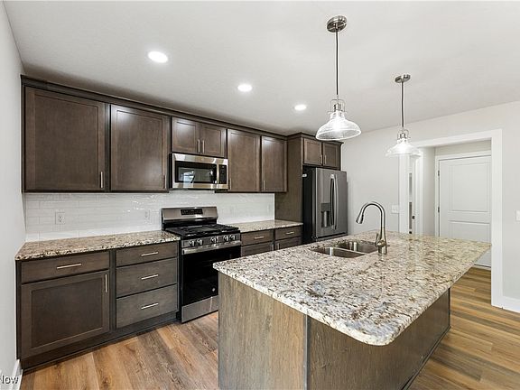 This beautifully designed 4-bedroom, 2.5-bath home offers a spacious two-story layout perfect for modern living. The open-concept kitchen, living room, and dining area create a seamless flow, ideal for both everyday living and entertaining. The gourmet kitchen features stainless steel appliances, a sleek tile backsplash, and granite countertops throughout. A large walk-in pantry provides plenty of storage space for all your culinary needs. With a convenient bedroom located on the main floor, this home offers flexibility for guests or those seeking main-level living. Upstairs, the luxurious primary suite boasts a private retreat with a spacious walk-in closet. The primary bath includes a double vanity and a walk-in shower, creating a spa-like experience right at home. Each of the additional bedrooms also offers walk-in closets, providing ample storage for everyone in the family. The second-floor laundry room adds convenience, making household chores a breeze. Set on a flat, generously sized lot, the large backyard offers endless possibilities for outdoor enjoyment. A concrete patio, driveway, and final grading with grass seed will be completed soon, providing a finished and polished exterior. The full, unfinished basement is plumbed for a future bathroom and could easily be finished to add additional living space, perfect for a home theater, gym, or guest suite.Additional highlights include a two-car garage and a thoughtfully designed floor plan that maximizes space and flow throughout the home. Don’t miss out on this exceptional opportunity to own a brand-new home in North Canton, built by award winning builder, Classic Custom Homes.