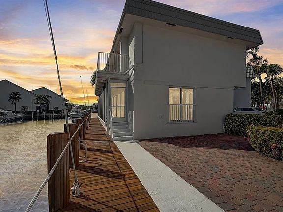 Largest unit in Boca Cove is available for sale + its a corner unit! This is your opportunity to score an 1,950 sq ft waterfront oasis. 3 Bed, 3 full bath with 48 ft boat dock. Bright and open floor plan with a full wall of Impact sliders that open to the canal breeze. One of the few units with Direct Intercoastal views! Watch the boats from your screened in patio downstairs or tremendous balcony upstairs. Kitchen is open to the dining & living area. Tile floors throughout. All large bedrooms. Two have balconies and en-suite bathrooms. All feature custom closets. Dock has electric & water. This unit has a side patio space to enjoy a BBQ. Feels like your living on a floating villa! Private beach access. 2 parking spaces. Pet friendly. Well maintained community with a pool, gym & club house.