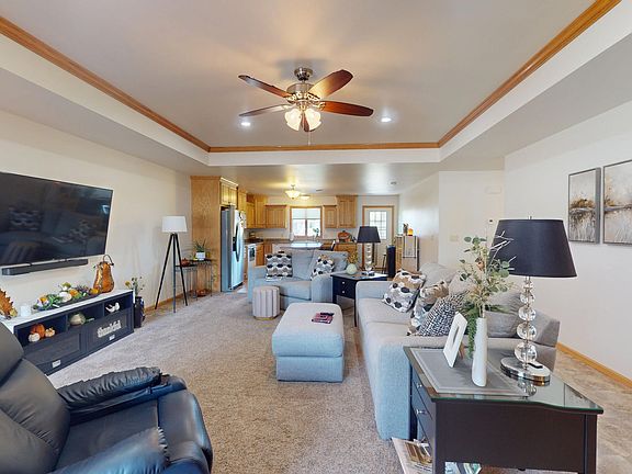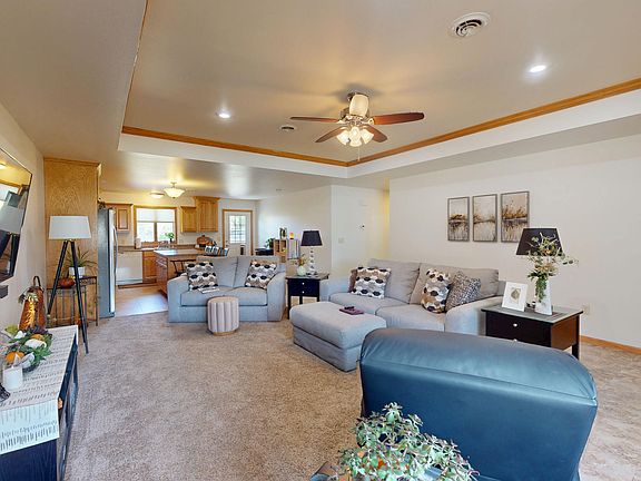 Beautifully maintained, zero-entry twin home boasts of spacious rooms filled with natural light. An open-concept layout connects the living, dining, and kitchen areas. A moveable kitchen island adapts to your lifestyle. Living room features a tray ceiling and master suite features a walk-in tile shower.Home has central air conditioning and forced-air heat powered by an electric heat pump. Spacious garage is finished off.