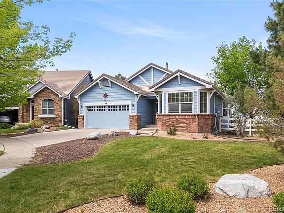 Ranch Style, Cul-de-Sac, Oversized Premium Lot, Former Model Home, Finished Basement, Priced to Sell! What else do you need to hear? Be welcomed inside by natural hardwood floors & an inviting open floor plan. The large, well defined kitchen features abundant counter-top space, white shaker cabinets & a fantastic eat-in space, drenched in natural light from a south facing bay window. A sizeable pass-through window unites the kitchen with the dining area & living room. Appointed with a gas fireplace, built-in cabinets & a vaulted ceiling, the living room will be the focal point for gatherings and relaxing evenings at home. Head to a generous Primary suite to relax and unwind under the soaring ceiling & overlooking the backyard. Complete with a 5-piece en-suite bathroom & walk-in closet, this retreat is light, bright & peaceful. A convenient main floor laundry room & 2 additional large bedrooms round out the main floor. The finished basement holds a wealth of possible uses from bonus room, media room or home gym. With a 4th bedroom (NC) and updated half bathroom, it's ideal for guest quarters or a Mother-in-Law suite. At over 9,000 square feet, this lot is among the largest to be found in Murphy Creek & this yard is primed & ready for summer enjoyment. Take a short stroll out the front door to find some wonderful amenities in this golf course community, including a pool, clubhouse, fitness center, tennis courts and numerous parks, playgrounds, greenbelts & trails. Murphy Creek K-8 is a well regarded school & an easy walk or bike ride from the front door. This is an incredible value, do not sleep on the opportunity!