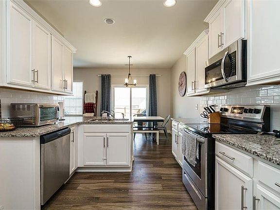 4 bedroom home with flex room on first floor. Family room with gas log fireplace, formal dining room, kit with granite & ss appliances, eat in bar and breakfast nook. Owners suite with 10.3x12 walk in closet & vaulted ceiling. Double vanity in both baths. Laundry room on 2nd floor with bedrooms. Covered front porch, large patio and fenced back yard. Neighborhood pool, playground, tennis, basketball & pickle ball courts. Easy access to I40.