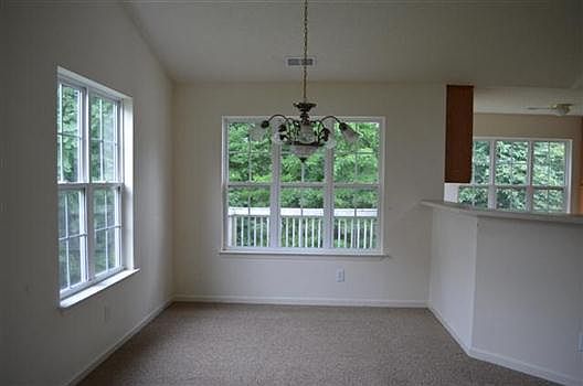 Available Now Spacious 4 bedroom, 2.5 bath home with 2 car garage located in Coble Farms. Living room has a beautiful marble surroundgas logfireplace, vaulted ceilings and formal dining room. Eat-in kitchen with all white appliances, and plenty of natural lighting. Carpet and vinyl flooring. Basement hasunfinished area and finished room that could be a 5th bedroom. Access to backyard from basement. Partially floored attic great for extra storage. Private deck overlooks large wooded area. Pets negotiable. No smoking.
