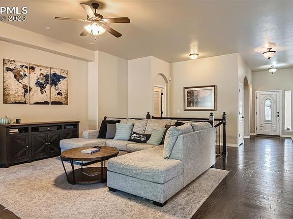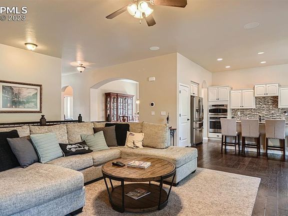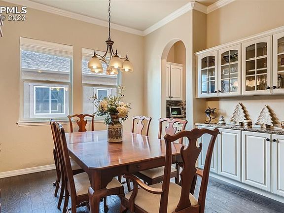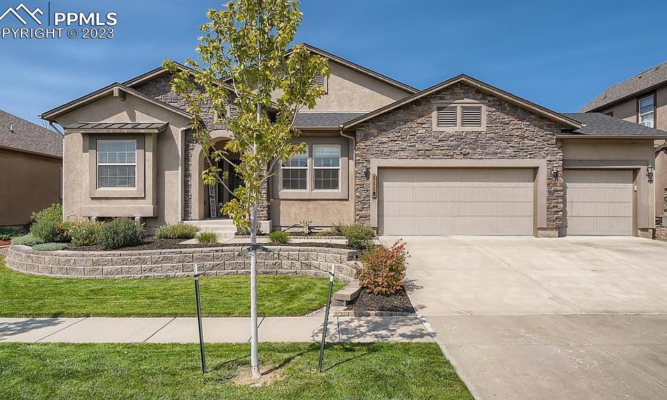 This home has all the class you'd expect from a Flying Horse Classic rancher!Be greeted on all sides with flare and functionality.The style embodies the Colorado lifestyle from warm stucco and stone exterior finishes to the gleaming wide plank wood flooring and neutral palette of the interior.New carpet throughout the home was added in '21. Abundant light and open floorplan of the main level, gives this sweeping living space the versatility for entertaining or just everyday family life.The main level living room adjoins the kitchen and breakfast nook for seamless comfortable flow.The dual sided fireplace adds warmth and charm.Create a simple meal or a feast in this gourmet kitchen.Complete with upscale Stainless appliances,handy pantry and lovely expansive granite countertops,this will be be a hub of family life.Enjoy your morning coffee or cozy family dinner in the eating nook.Built-in cabinetry adds beauty and functionality to the formal dining room.French doors lead into the office/flex space.Step into the oasis that is the Primary Suite!Generously sized and filled with Colorado sunshine, you can also access the back patio from here.The ensuite bath with spa jetted tub and glass-sided shower add retreat to your life everyday!The laundry area and a secondary bedroom and full bath complete the main level. Come downstairs to where the fun happens!A wet bar with all the amenities compliments the huge family room.Abundant counterspace,a fridge and sink give you all you need to host the gang.The gas fireplace will add that cozy to those cool evenings.Are you into bouldering?There is an amazing climbing gym room with padded floor just in case you...can't...quite...reach that last handhold.2 Secondary bedrooms and a full bath complete the basement level.Outside, the entire property is alive with mature landscaping that adds privacy and beauty.The covered patio adds fresh outdoor living space.Your pooch will love the dog run with new K-9 turf.Come and visit your new home!