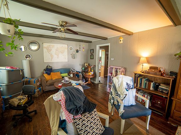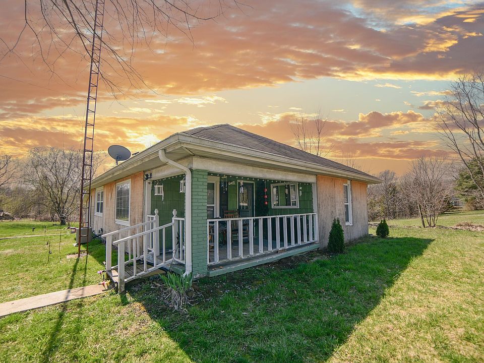WELCOME HOME to your TWO to THREE bedroom, ONE bathroom country living home on approximately 0.65 acres. Enjoy the country views as you pull into your driveway and are greeted by your covered front porch. Step inside the front door into an open concept living room and dining room area with lovely hardwood floors. From this living space you have two bedrooms and a full bathroom. Your kitchen is spacious and comes complete with kitchen appliances. Off of the kitchen is another room that could be your third bedroom or a perfect sunroom living space to enjoy your beautiful backyard views. Your laundry room comes complete with washer and dryer. The backyard offers plenty of space for the critters and kiddos to play as well as a one car detached garage. Utility averages are: Duke ($144/month), Centerpoint ($120/month), East Lawrence Water, and Well water. If you are looking for country living, come take a look at this home today!