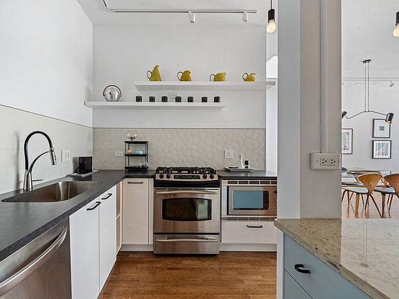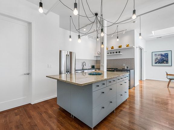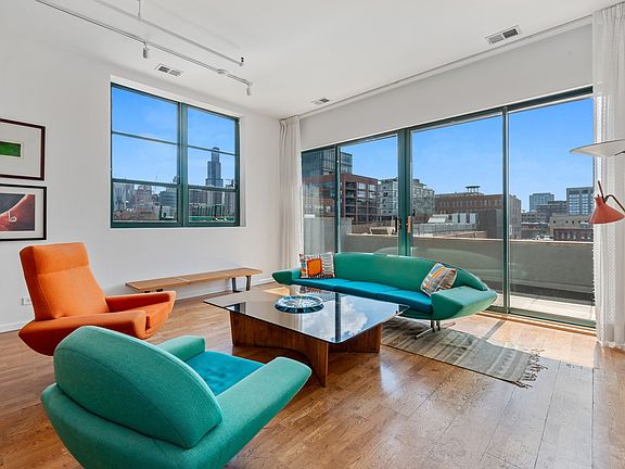 Fulton Market's Historical District Penthouse Loft. Move into an edgy, fast growing neighborhood. Original details combined w/new renovations for loft perfection. First floor features large kitchen w/7x4 ft floating granite island, pantry & industrial string led light fixture. Great for cooking & entertaining. Flexible open flr plan w/natural tone wood flrs & high ceilings. Living rm is a great gathering space. South end features floor to ceiling sliding glass doors that lead to a full length balcony. Dinning area at the center of the loft w/a pop up skylight sits 10+. The north side features bdrm that can be closed off by glass doors. Oversized walk-in closet. Full 2nd bathroom and laundry area. Spacious sunny master suite w/custom walk-in closet, bthrm w/quartz double vanity, deep tub, glass shower, stone tiles. Metal staircase leads you to upper level w/open 3rd bdrm (can be office.) Access to private deck. Included prime indoor parking & storage.