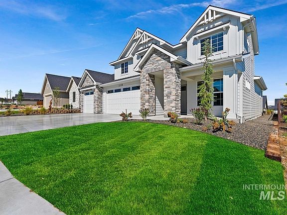 Introducing "The Rainier" by award-winning Eaglewood Homes. Delivering incredible value in Summit Ridge, this stunning 3,000 sq ft residence boasts a spacious floor plan designed for ultimate comfort and style. An elegant entry leads to the open great room filled with natural light, soaring 18ft tall ceilings and a striking floor-to-ceiling stone fireplace. The thoughtful design and selections continue into the kitchen with ceiling height cabinets with lighted glass doors on the top cabinets. A recessed ceiling with alder wrapped beams adds a touch of sophistication. The main level owner's suite seamlessly connects to a roomy walk-in closet and a conveniently located laundry room. Work from home in the stylish office with double glass doors for privacy. Three generously sized bedrooms, ample storage space plus a bonus room upstairs adds versatility to the living spaces. Oversized 3 car garage provides 825 sq ft for parking and storage. Full front and rear landscaping on a spacious corner lot.
