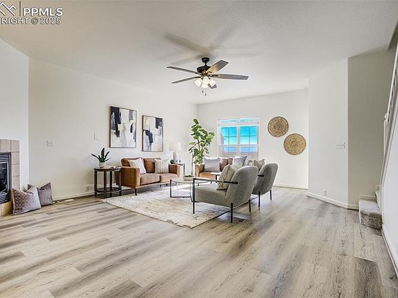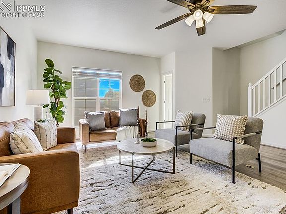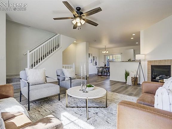 Freshly updated & move-in ready, this Walters Commons townhome features new carpet, new luxury vinyl flooring, fresh interior paint, a newly painted deck, a newer refrigerator, & a recently replaced water heater. With central A/C, forced air heating, & an attached 1-car garage, the home blends practical comfort w/ low-maintenance ease. Inside, the three-level layout offers 9’ ceilings on the main floor, an open-concept great room anchored by a gas fireplace, & a kitchen/dining area that walks out to the spacious deck—ideal for indoor-outdoor flow. Each of the three bedrooms has its own private en-suite bath, including two upper-level suites & a third suite on the lower level, offering flexible guest or multi-gen options. Ample guest parking is just steps away, & the HOA covers exterior maintenance, trash, snow removal, & structure insurance. Conveniently located near I-25, Hwy 83, downtown Monument, USAFA, hiking trails, golf courses, & top-rated D38 schools, this is easy living in one of Monument’s most accessible neighborhoods.