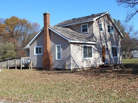 COUNTRY CHARMER ON 3 ACRES! This 3 bedroom 1 1/2 bath home features an oak kitchen with appliances, ceramic flooring and Corian countertops, formal dining room, spacious living room. Main level bedroom-furnishings to remain, laundry room, full bath with separate whirlpool tub and large stand alone shower. Upstairs contains two comfortably sized bedrooms and a 1/2 bath plus plenty of closets and built-ins. This house also has a partial basement- great for storage. Outside you have a large back deck with ramp, 2 car detached garage with electric and a huge backyard for bonfires and animals plus 2 acres of woods with plenty of turkey and deer. Endless possibilities await you!