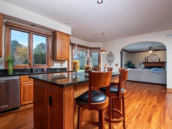 Impressive custom built home with over 3,000 sqft of living space with centralized location close to shopping, schools, & I-90 corridor. This home features 2 story soaring ceiling opens to formal dining room & formal living room with stunning wood floors throughout. Arched doorway leads you to main floor office and library with beautiful built in cherry cabinets. Family room w/ wood burning fireplace, wall of windows & door leading to private patio overlooking the professionally manicured backyard. Eat-in kitchen featuring cherry cabinets, granite countertops & eat at island. 1st floor laundry room off of kitchen leading to a 3.5 car garage. Open staircase welcomes you to 2nd level featuring; Expansive Master Suite w/ beautiful tray ceiling, walk-in closet, bath recently updated w/ double sink vanity, jetted tub, separate shower & tile floor! 3 large bedrooms & a full bath completes the 2nd level. This dream home is situated on 1.78 acres. County taxes. Belvidere school district.