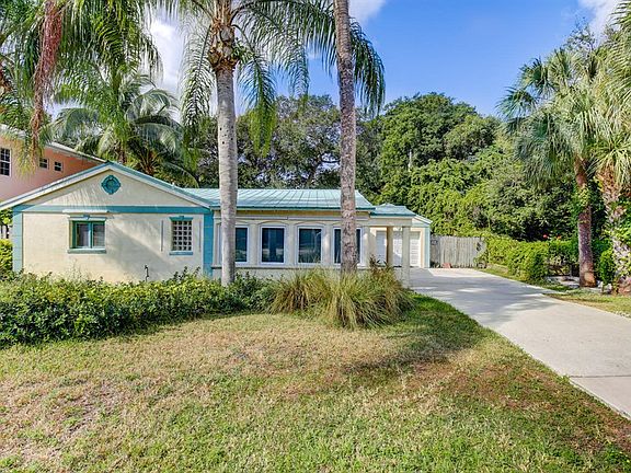 Wonderful Key West style single family home. No HOA! Single story home offers 2 bedrooms and 2 full baths. There is a one car garage. Vaulted wood ceilings throughout. Mexican tiled floors throughout with the exception of one bath that has Travertine. Welcoming covered front entry with wood door. The kitchen has maple cabinets, glass front display cabinets, a breakfast bar, granite countertops, and a full complement of stainless steel appliances. There is a planning desk attached to the breakfast bar. The master bedroom has a reach in closet Master bath offers recessed lighting, pedestal sink, linen closet, and shower. Guest bedroom has a reach in closet. Guest bath has been renovated with Travertine floor and shower/tub combo. The laundry area is located in the garage with a washer, dryer, and laundry tub. French doors lead from the master bedroom and living room to the large screened porch with an outside shower and Mexican tile floors. Big backyard has mature landscaping and is fenced. Located close to many entertainment and dining venues. Beautiful beaches of Jupiter, Juno, and Singer Island are just a short distance away.